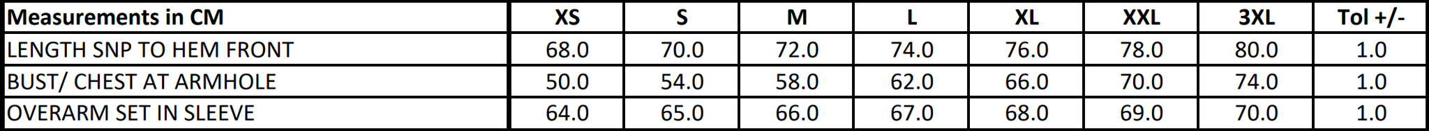 Size -S 34/36" M 38/40" L 42/44" XL 46/48" 2XL 50/52" 3XL 54/56"