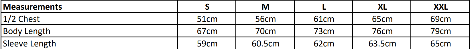 Size - S 36" M 40" L 44" XL 48" 2XL 52"
