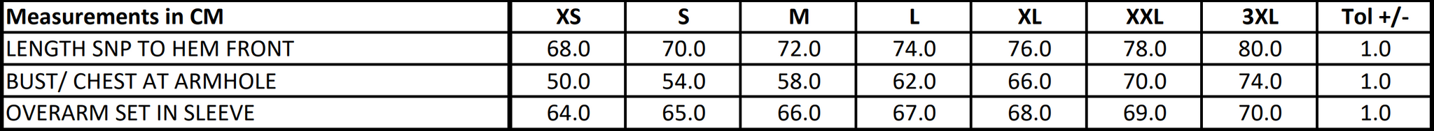Size - S  34/36" M 38/40" L 42/44" XL 46/48" 2XL 50/52" 3XL 54/56"
