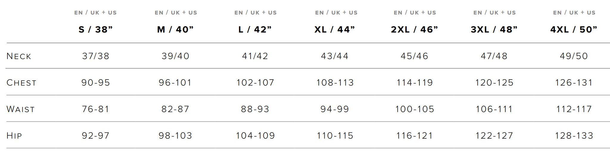 Size - S 38" M 40" L 42" XL 44" 2XL 46" 3XL 48" 4XL 50"
