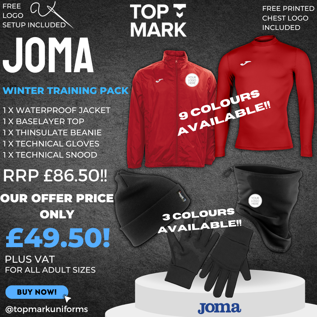 The Joma winter Training Pack is a must have for your winter sports activities. It's designed to keep you warm and comfortable on and off the field. The pack includes everything you need, from thermal base layer to waterproof jacket.
