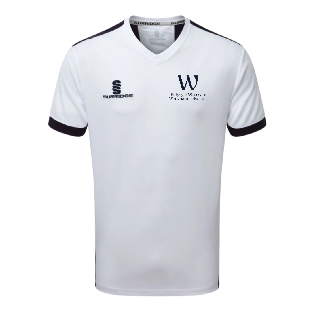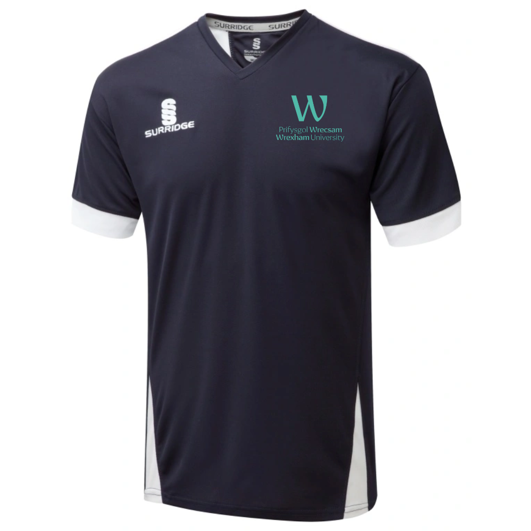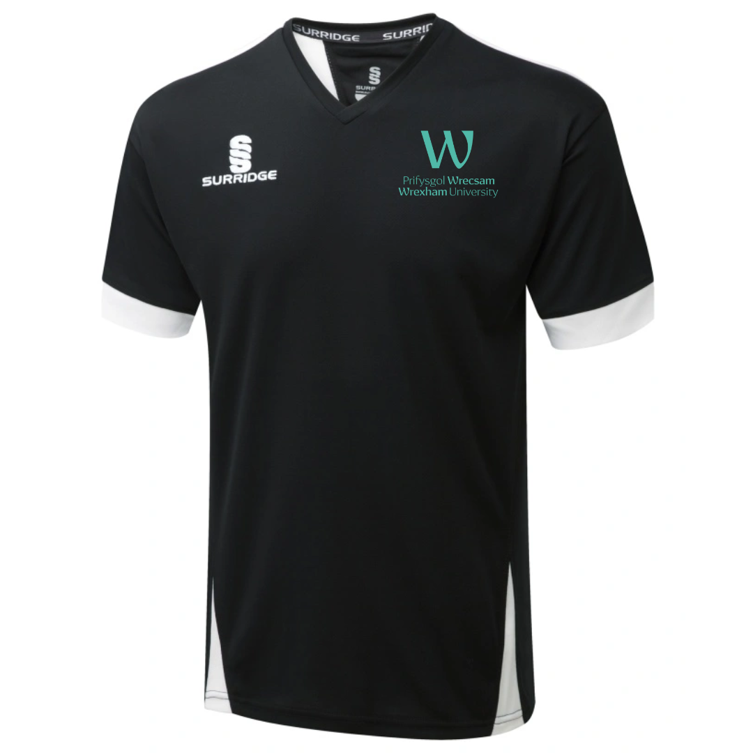Left chest Surridge Sport logo and right chest printed Wrexham University.